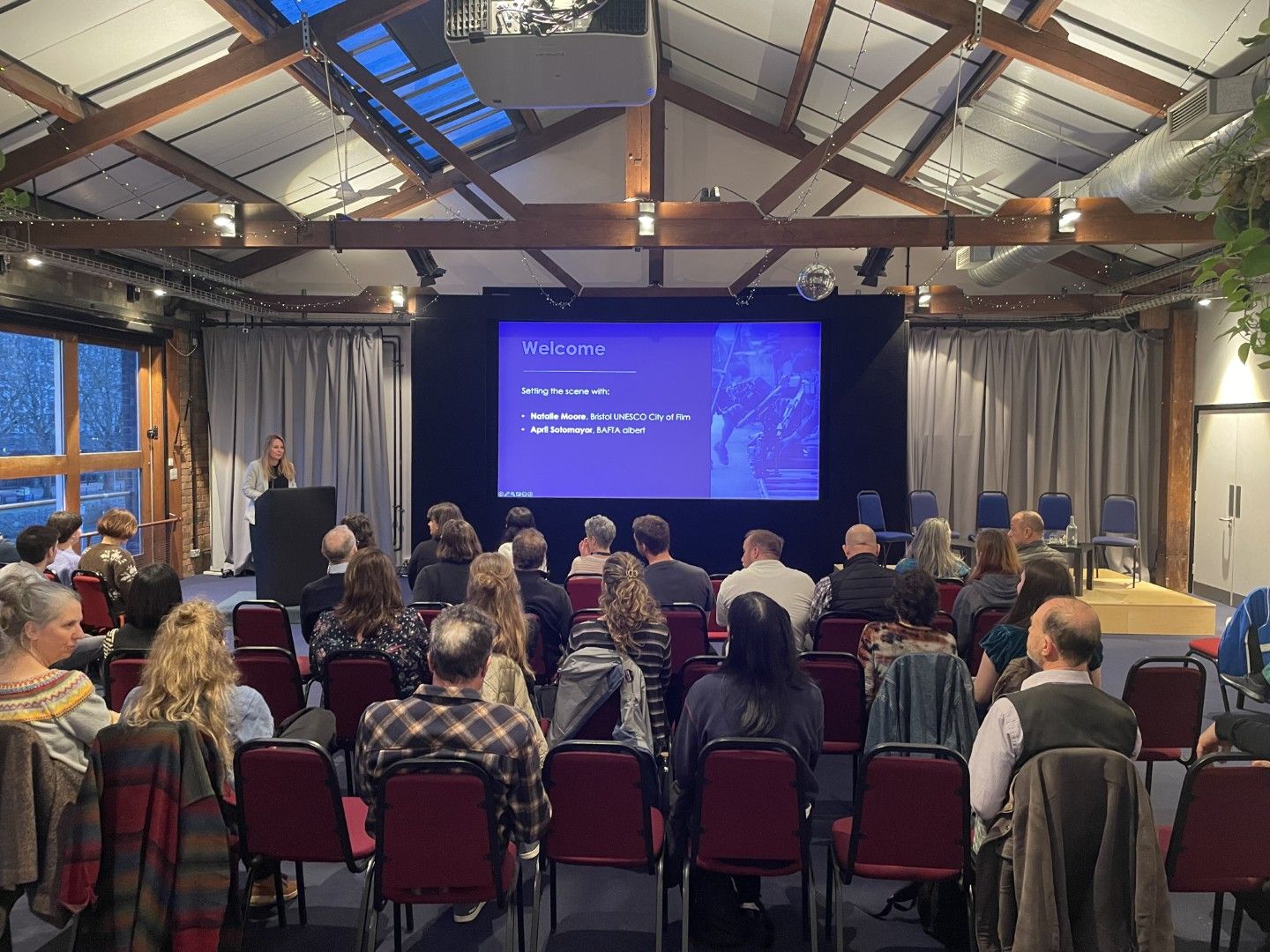 Natalie Moore (Bristol UNESCO City of Film) and April Sotomayor (BAFTA albert) welcome the audience